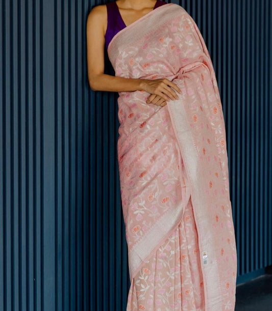 Flamingo Banarasi Pure Khaddi Georgette Saree