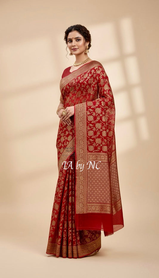 Crimson Banarasi Pure Khaddi Georgette Saree