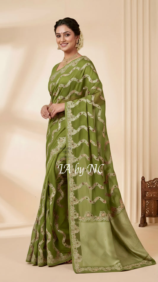Avocado Banarasi Mashru Katan Silk Meenakari Saree