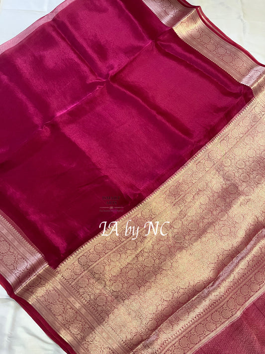 Cerise Banarasi Pure Tissue Silk Saree