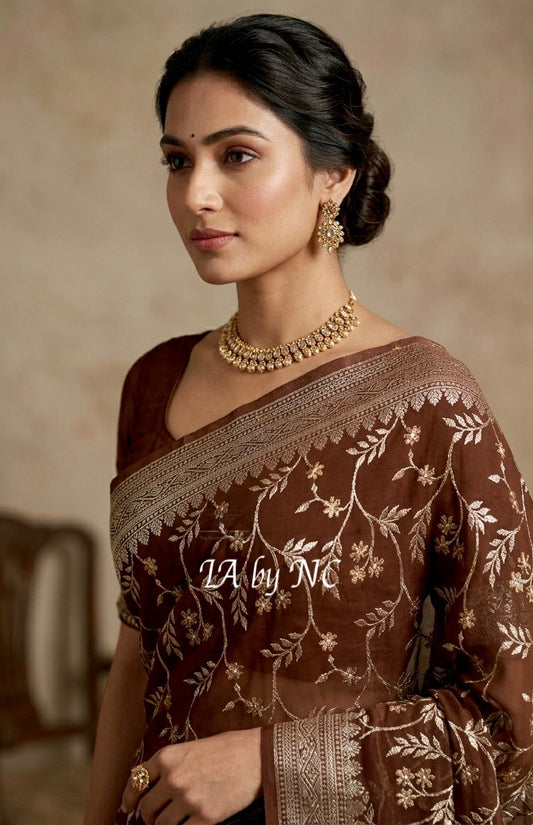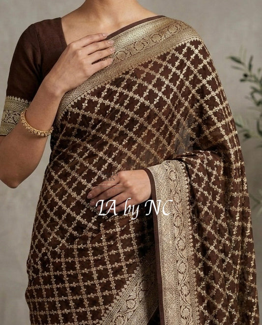 Walnut Banarasi Pure Khaddi Georgette Saree