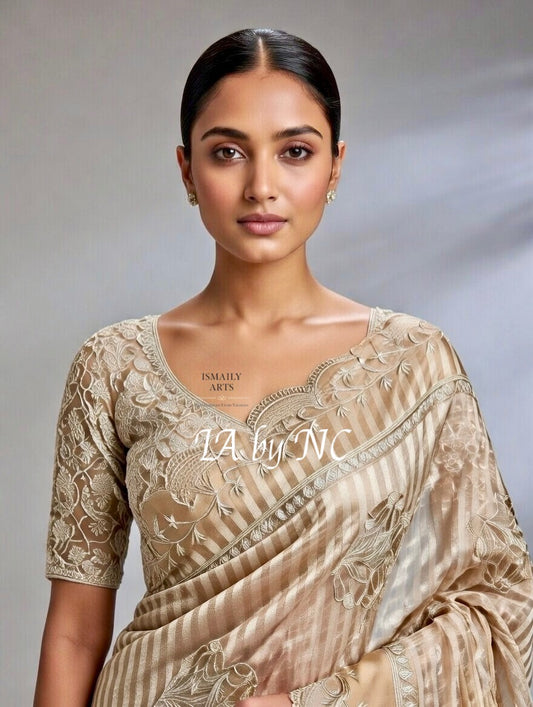 Ivory Banarasi Pure Tissue Silk Designer Saree