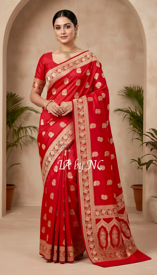 Carmine Banarasi Pure Tissue Silk Brocade Saree
