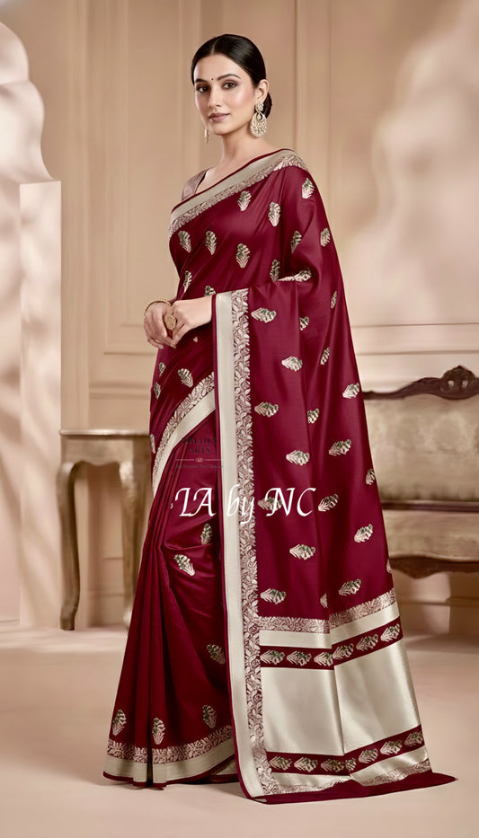 Burgundy Banarasi Mashru Katan Silk Meenakari Saree