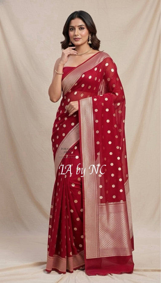 Crimson Banarasi Pure Khaddi Georgette Saree
