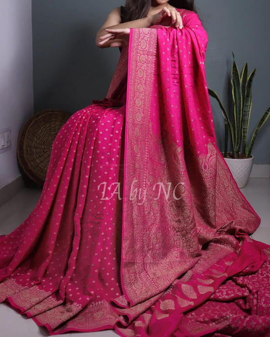 Fuschia Banarasi Pure Khaddi Georgette Saree