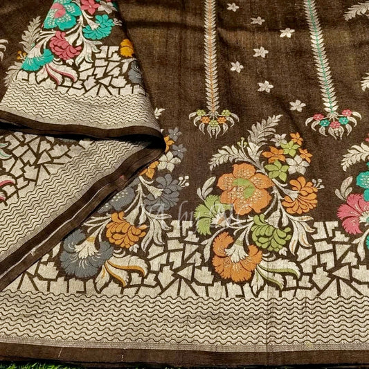 Mahogany Banarasi Pure Tissue Silk Zardosi Saree