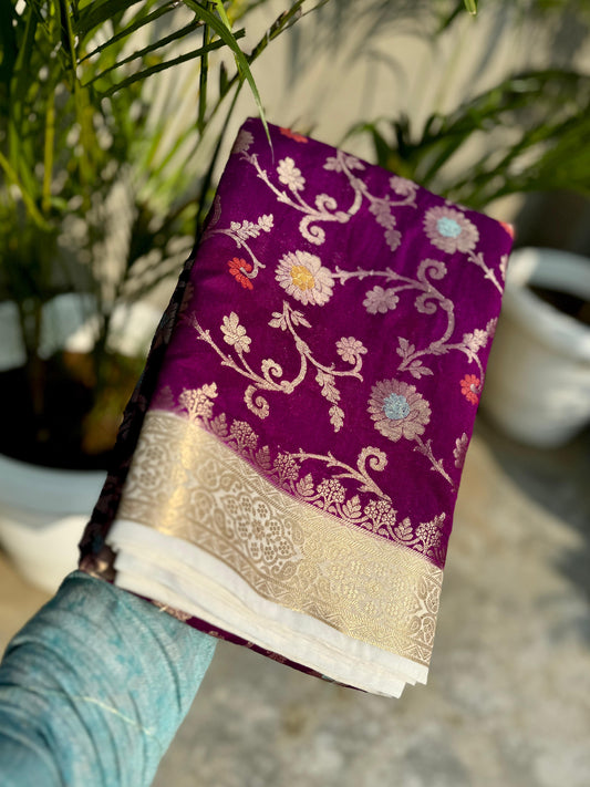 Baby Banarasi Pure Kora Organza Kadwa Saree