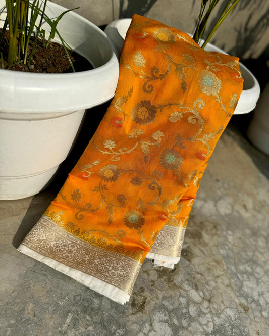 French Banarasi Pure Katan Silk Raw Mango Saree