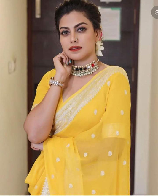 Tea Banarasi Pure Chiffon Georgette Saree