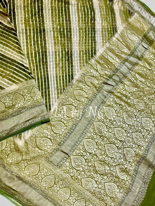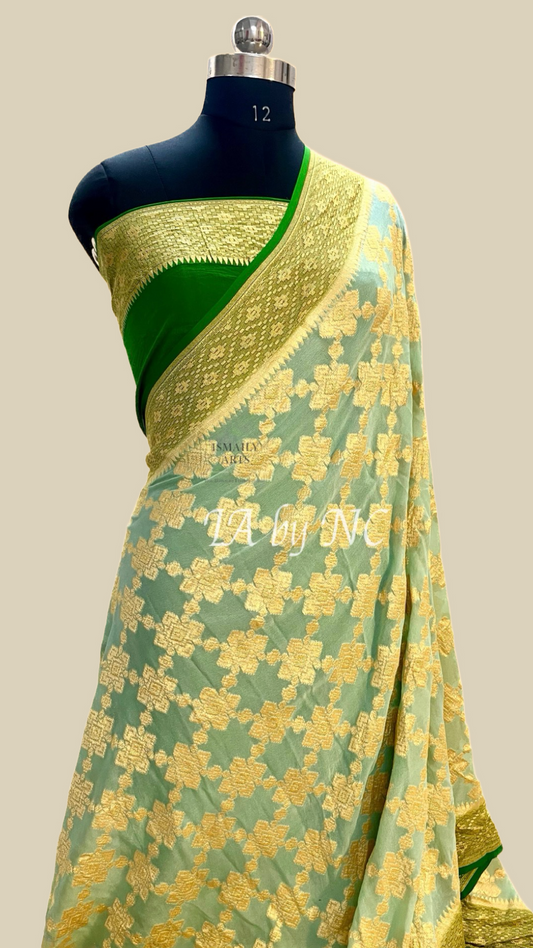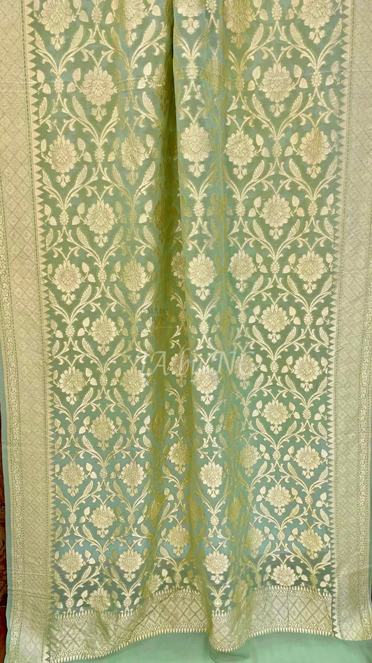 TeaGreen Banarasi Pure Khaddi Georgette Saree