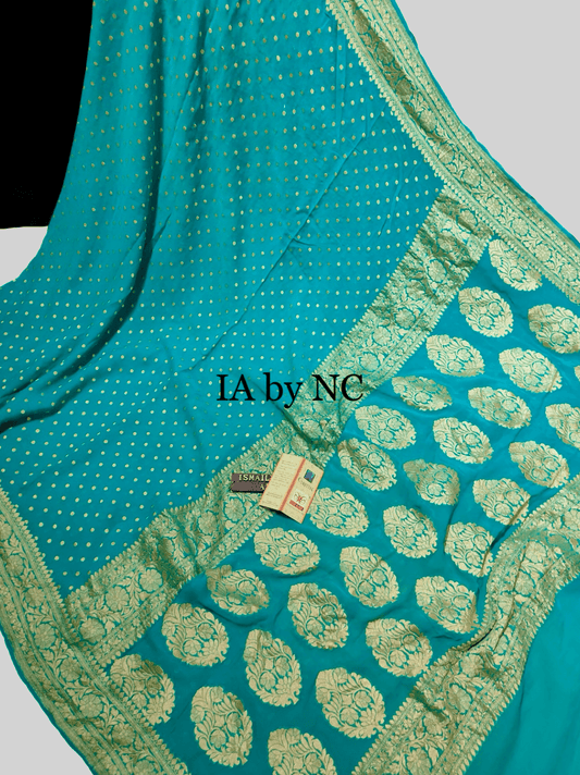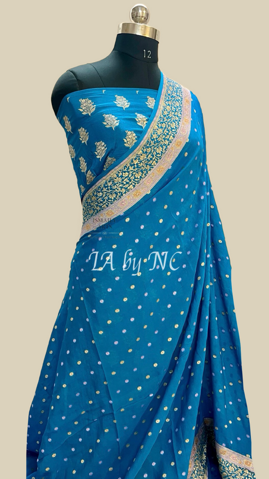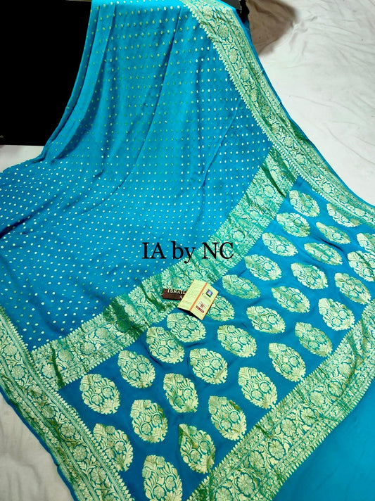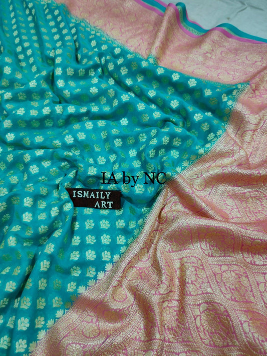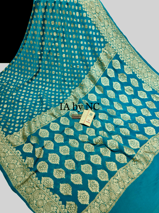 Teal Banarasi Pure Khaddi Crepe Georgette Saree