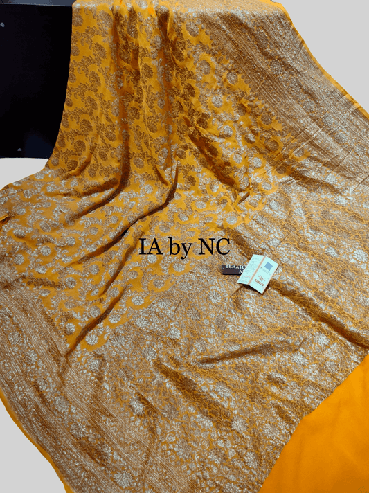 Tangerine Banarasi Pure Khaddi Georgette Saree