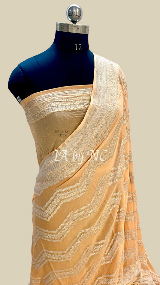 Tawny Banarasi Pure Khaddi Georgette Saree