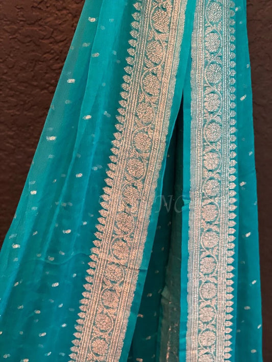 Teal Banarasi Pure Khaddi Georgette Saree
