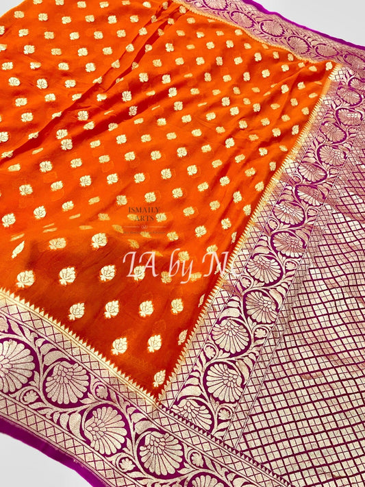 Trombone Banarasi Pure Khaddi Georgette Saree