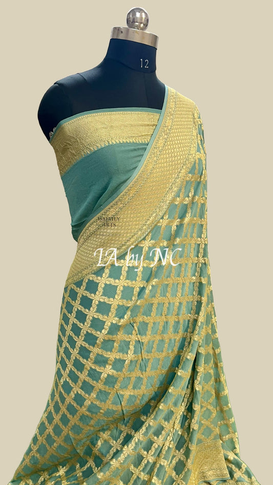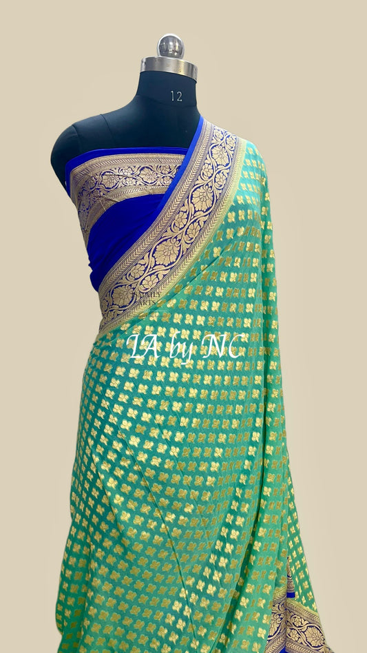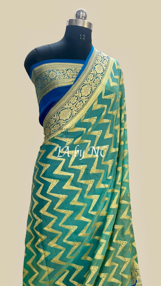 Turquoise Banarasi Pure Khaddi Georgette Saree