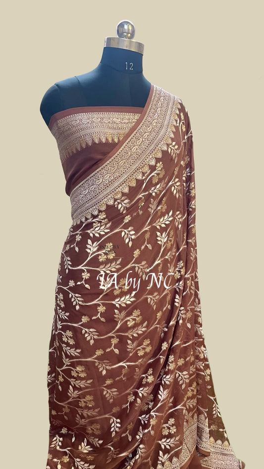Walnut Banarasi Pure Khaddi Georgette Saree