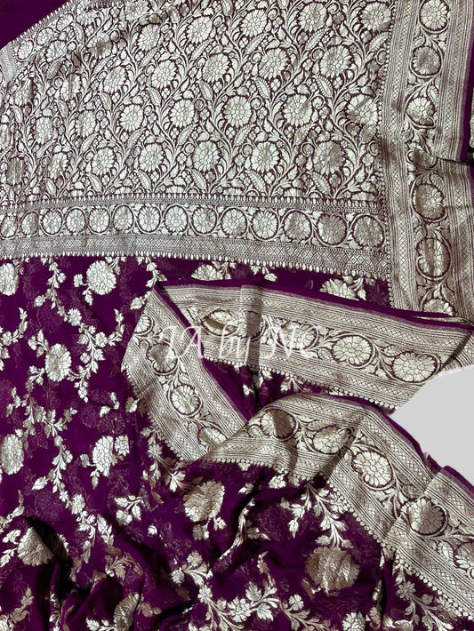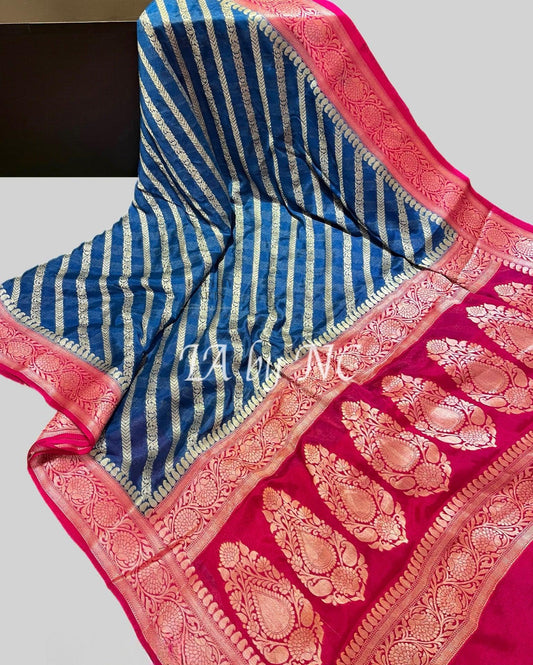 Yale Blue Banarasi Pure Chiffon Georgette Saree