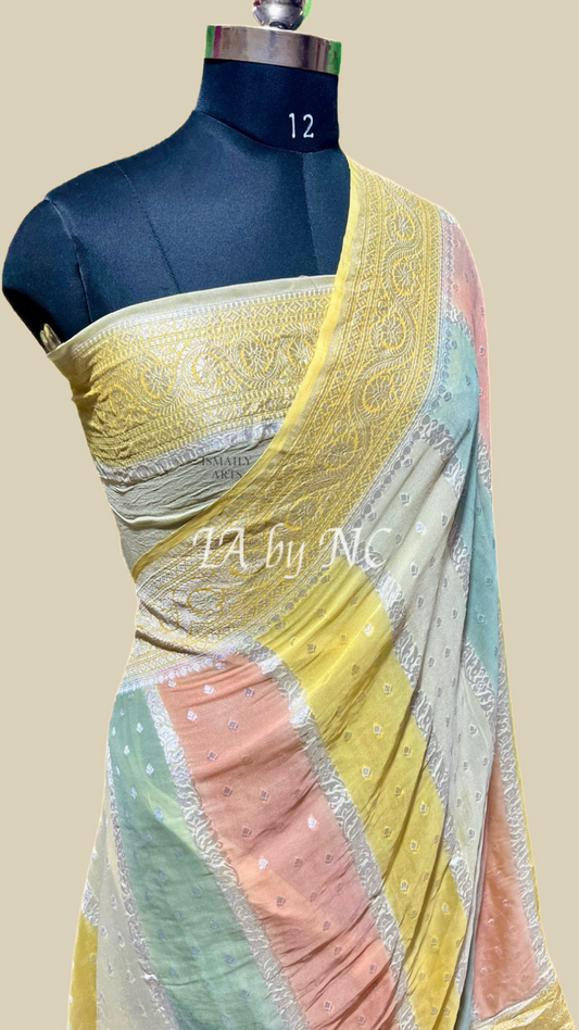 Yellow Banarasi Pure Khaddi Georgette Kadwa Saree