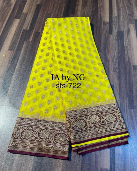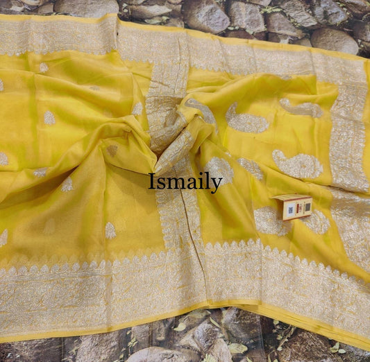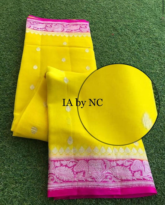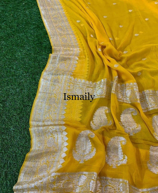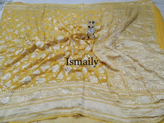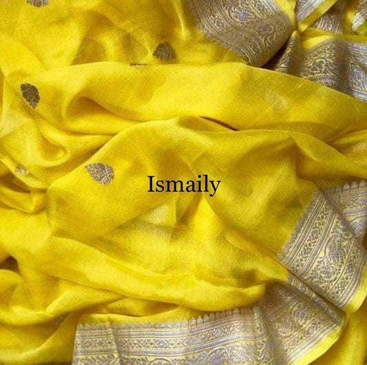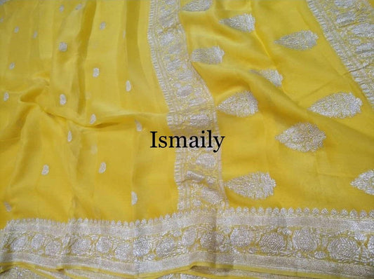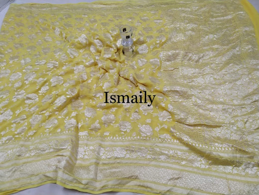 Yellow Banarasi Pure Khaddi Georgette Saree