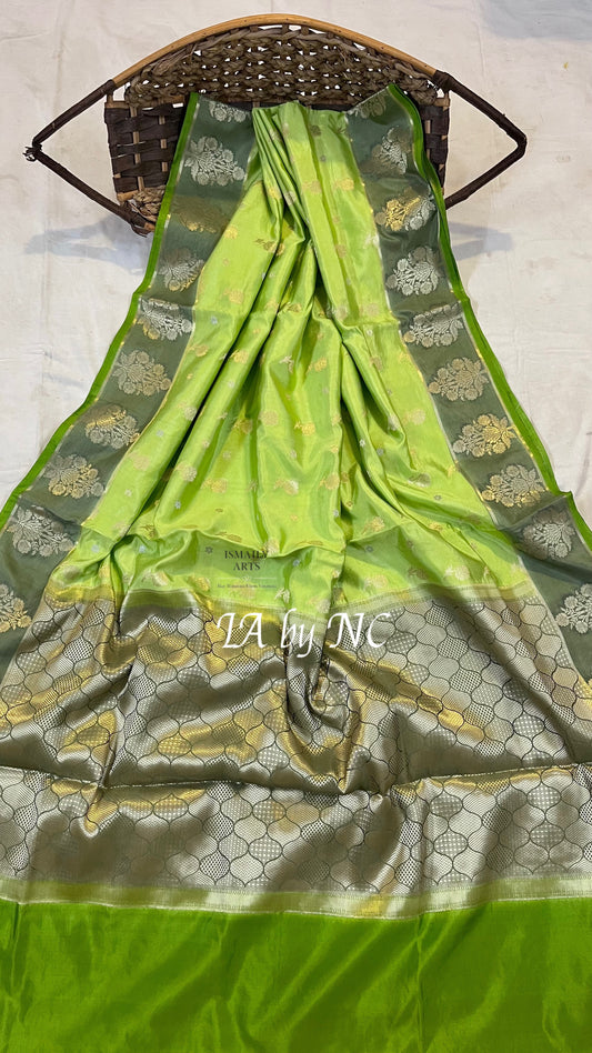Avocado Banarasi Pure Katan Silk Raw Mango Saree