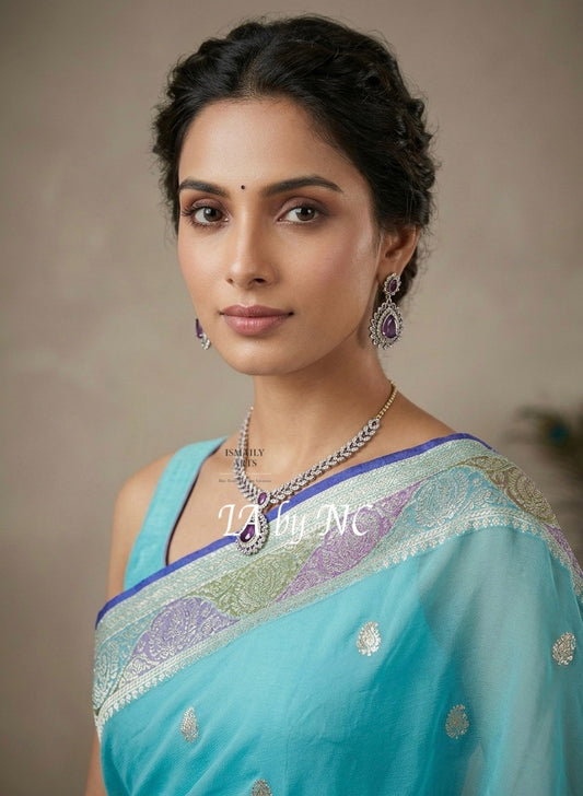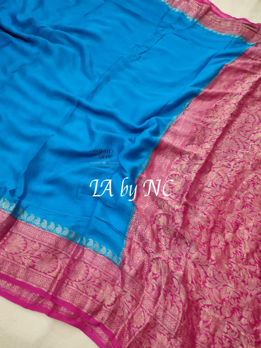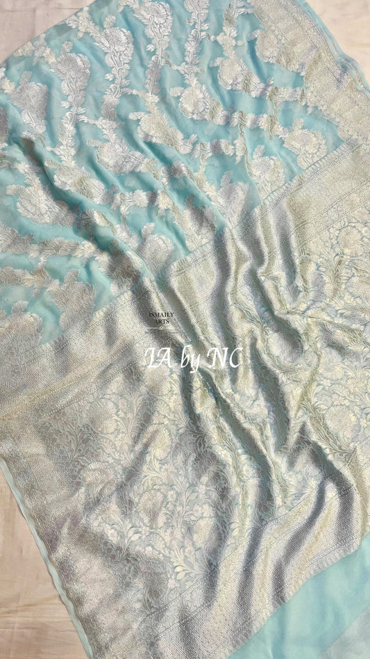 Azure Banarasi Pure Khaddi Georgette Meenakari Saree