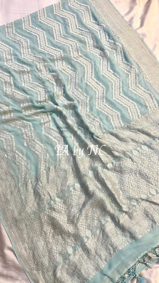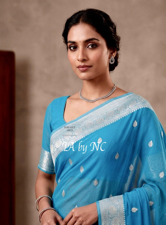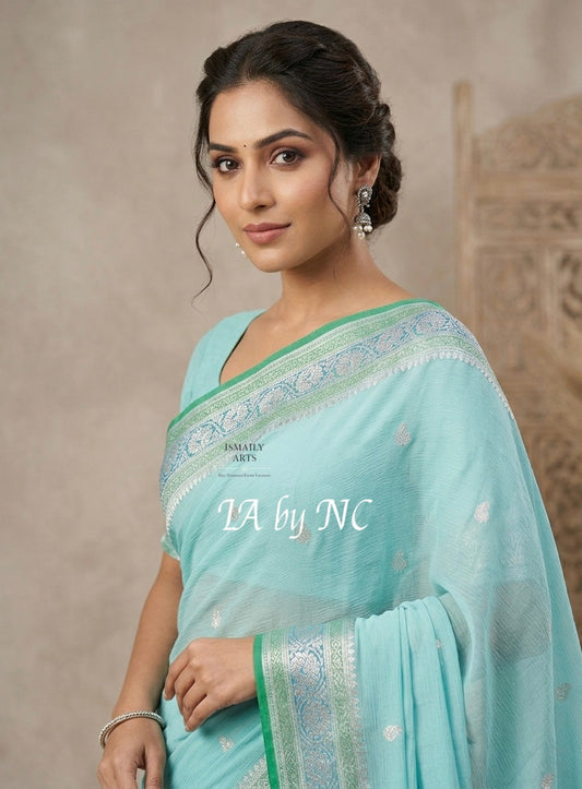 Azure Banarasi Pure Khaddi Georgette Kadwa Saree