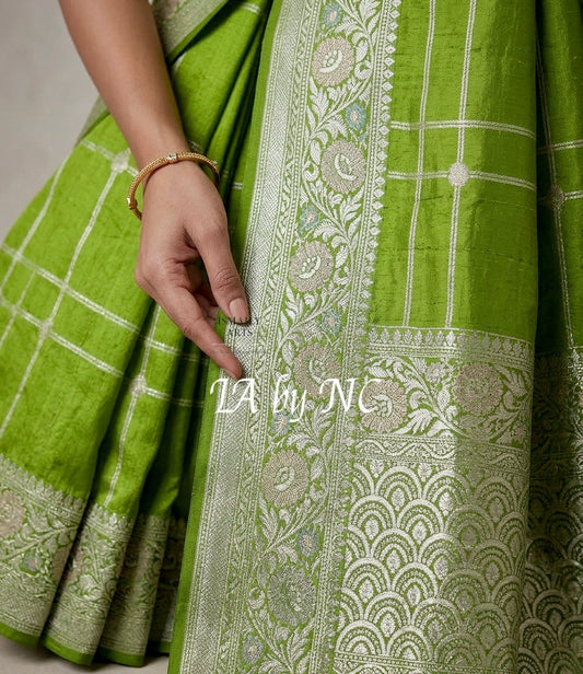 Avocado Banarasi Pure Khaddi Tussar Georgette Designer Saree