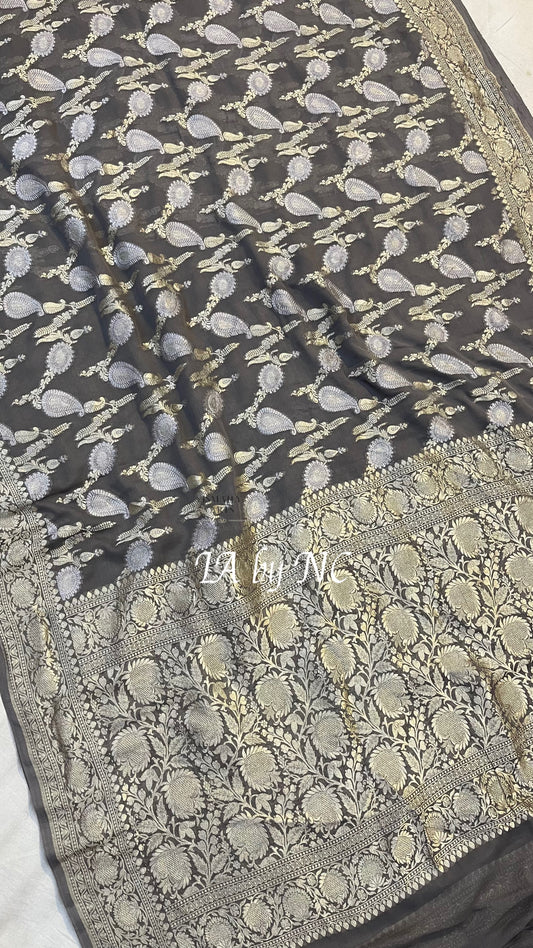 African Banarasi Pure Khaddi Tussar Georgette Brocade Saree