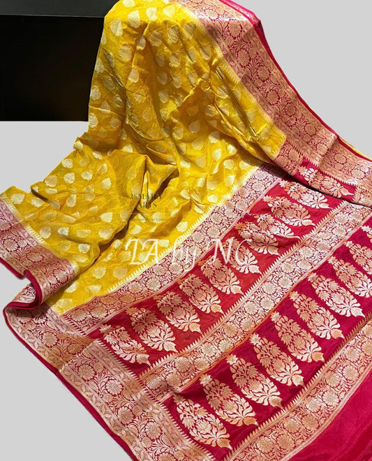 Baby Banarasi Pure Kora Organza Kadwa Saree