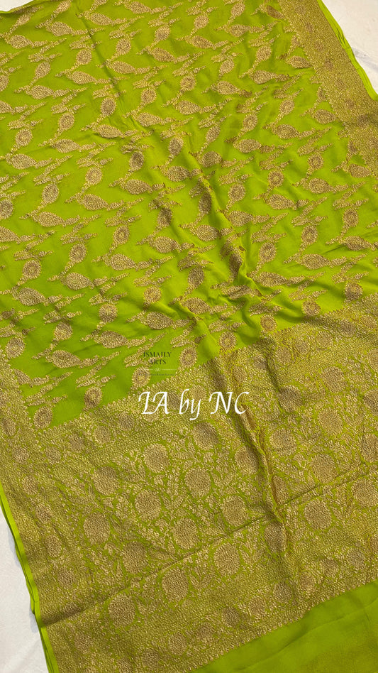 Avocado Banarasi Pure Khaddi Georgette Saree