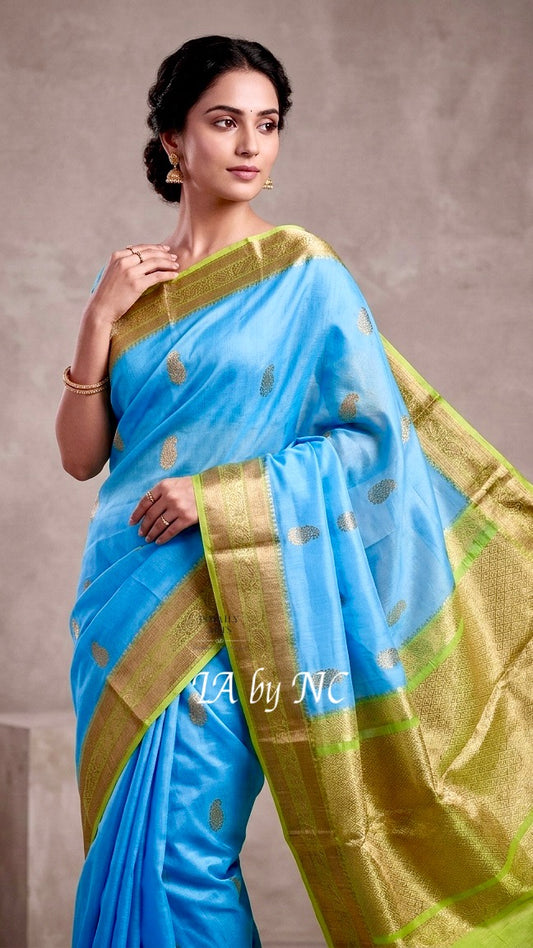 Azure Banarasi Pure Kora Organza Kadwa Saree
