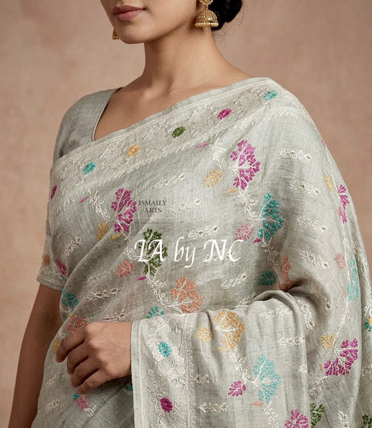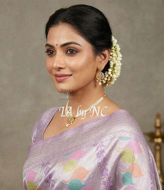 Ash Banarasi Pure Khaddi Tussar Georgette Meenakari Saree