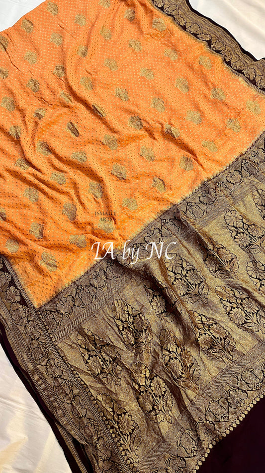 Apricot Banarasi Pure Khaddi Georgette Saree