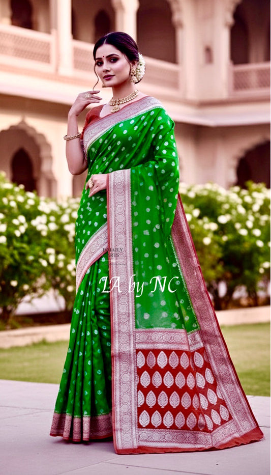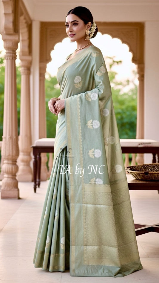 Avocado Banarasi Pure Katan Silk Raw Mango Saree