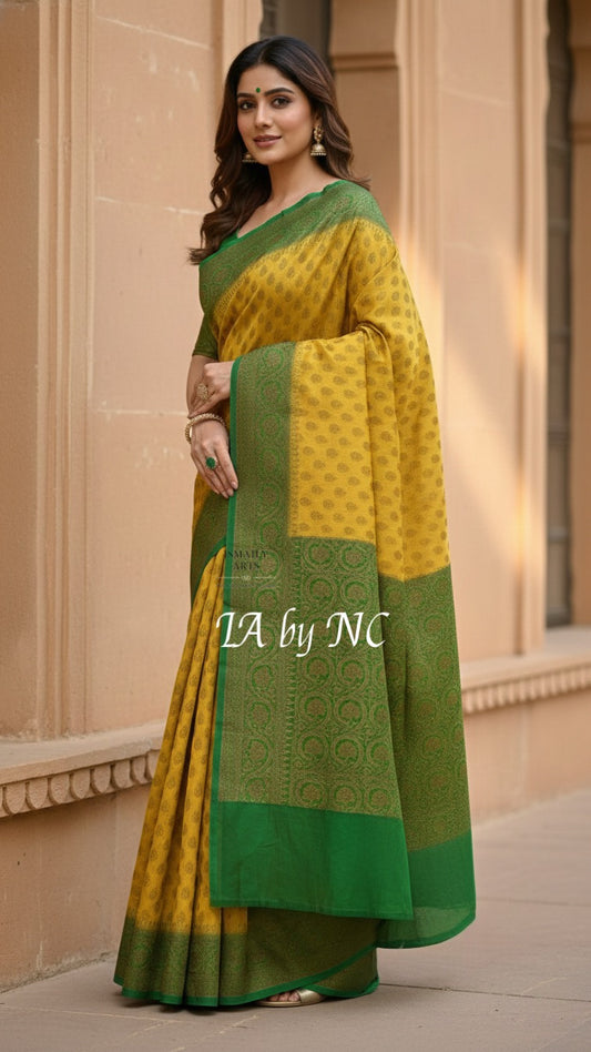 Bumblebee Banarasi Pure Katan Silk Raw Mango Saree