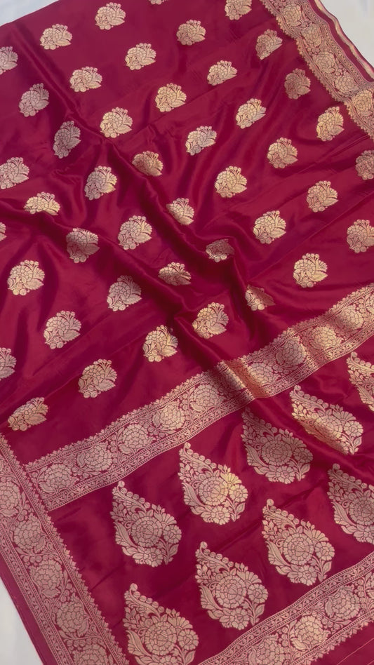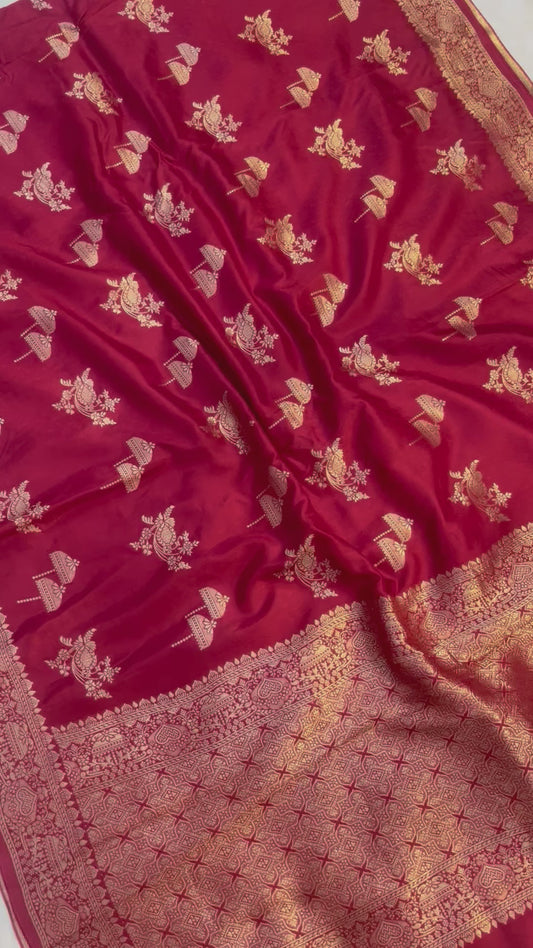 Ruby Banarasi Pure Katan Silk Raw Mango Kadwa Saree