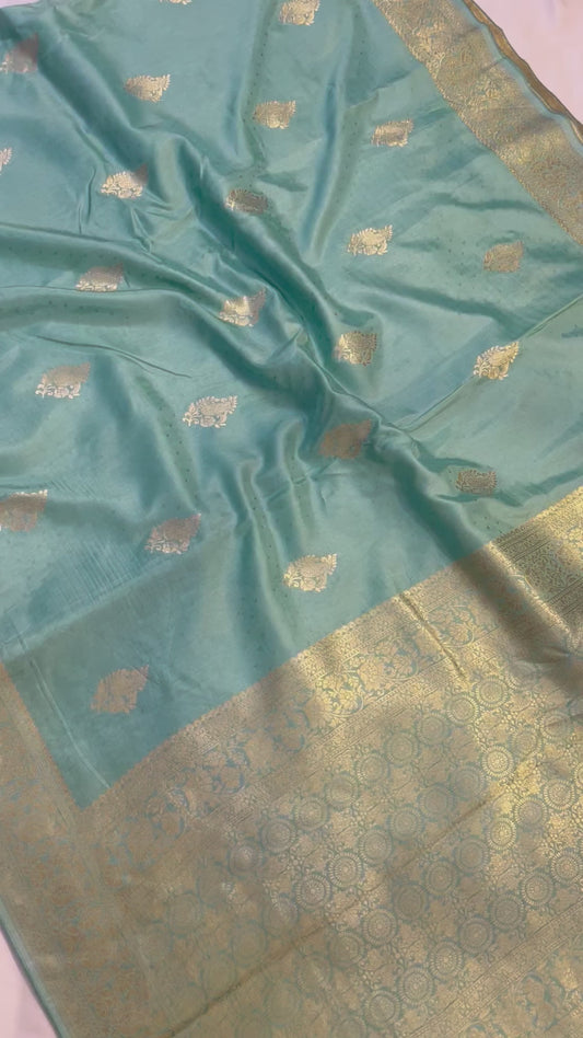 Turquoise Banarasi Pure Katan Silk Raw Mango Saree