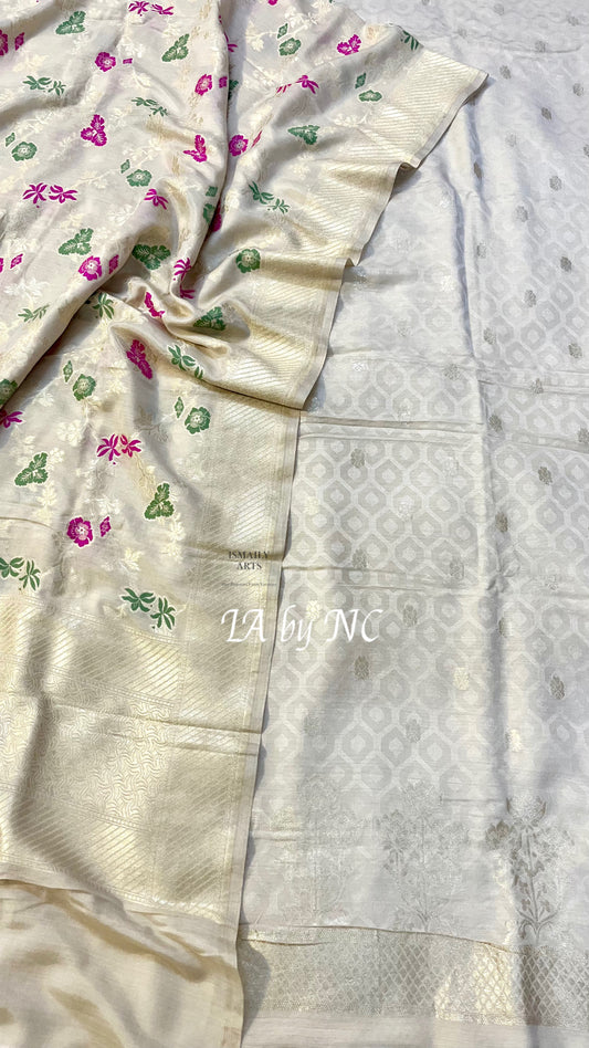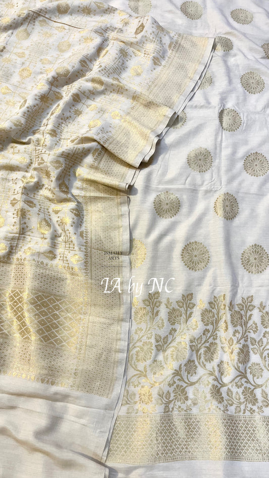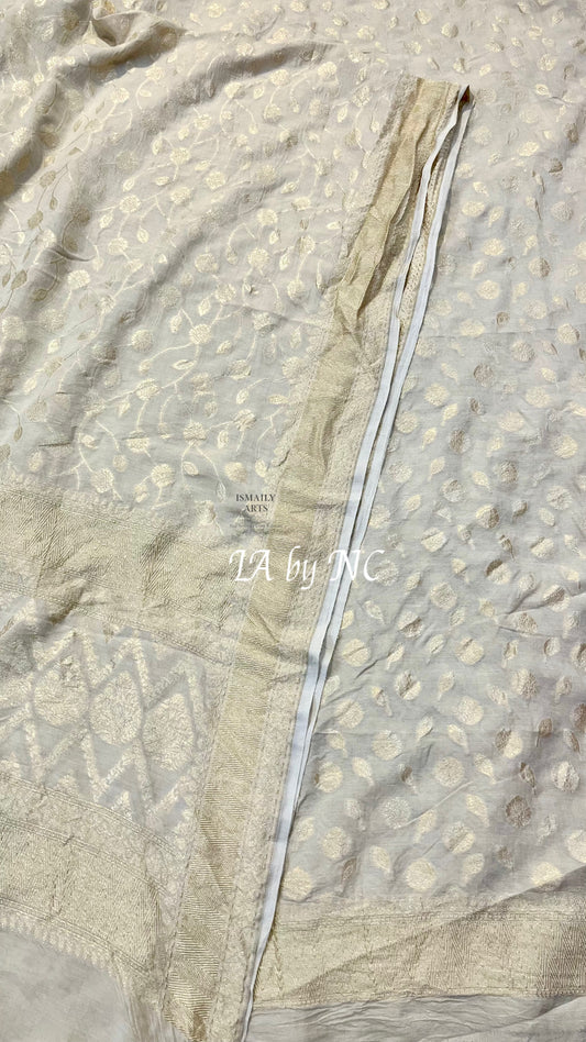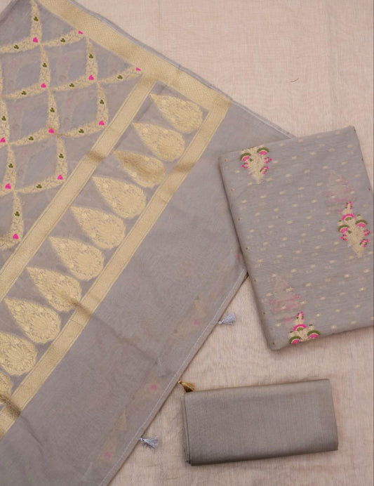 Grey Banarasi Premium Cotton Silk Jamdani Dress Materials