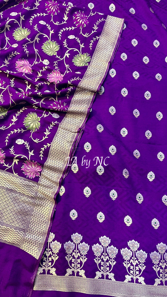 Grape Banarasi Pure Munga Silk Dress Material