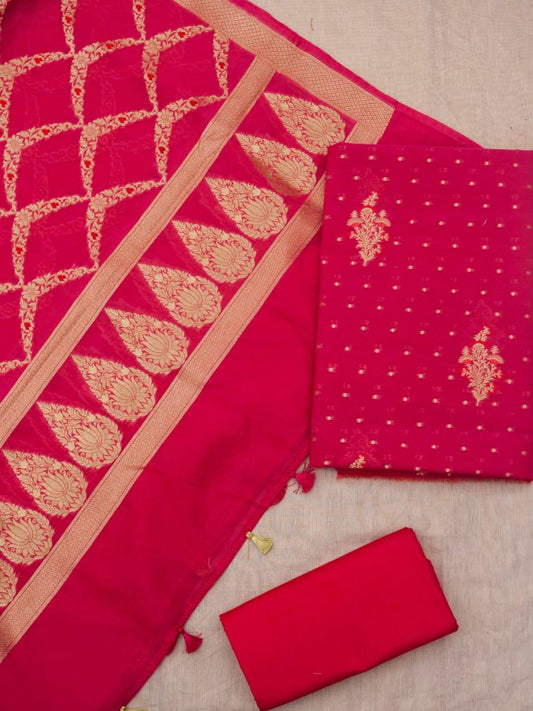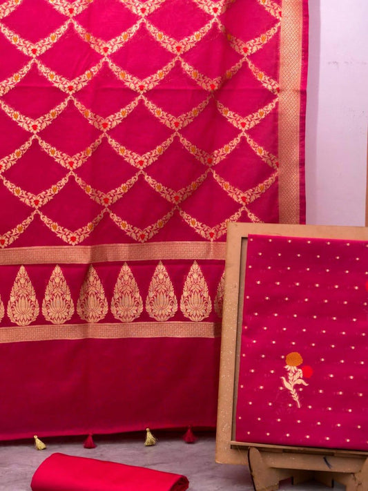 Raspberry Banarasi Premium Cotton Silk Jamdani Dress Materials