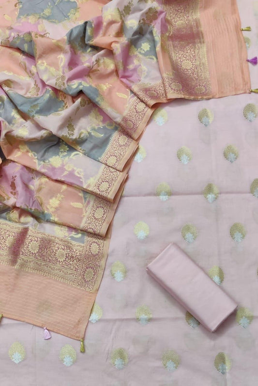 Mink Banarasi Premium Cotton Silk Jamdani Dress Materials