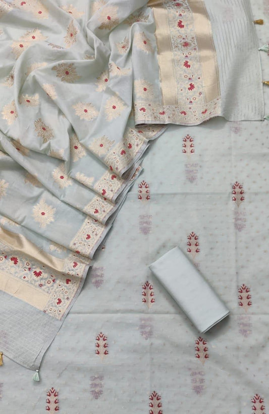 Pearl Banarasi Premium Cotton Silk Jamdani Dress Materials