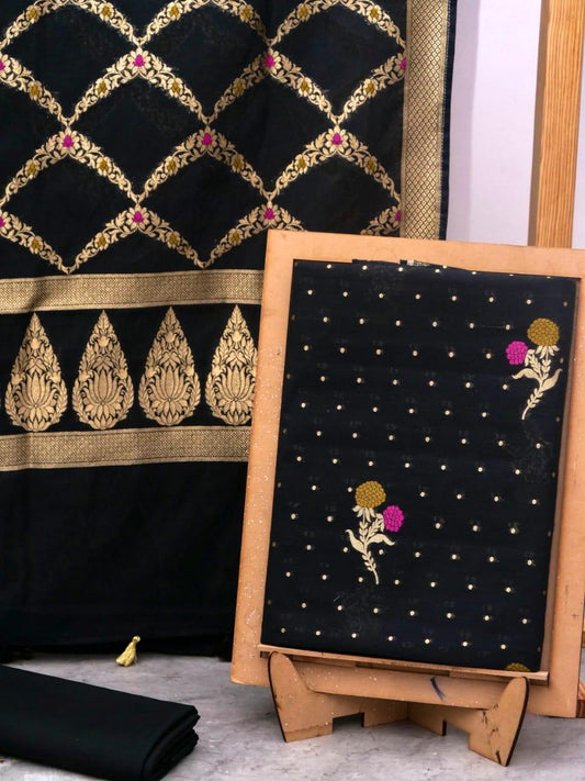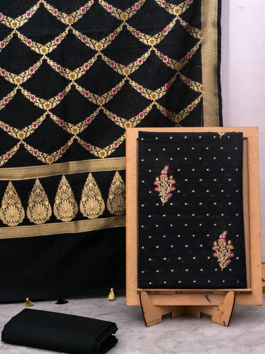 Black Banarasi Premium Cotton Silk Jamdani Dress Materials