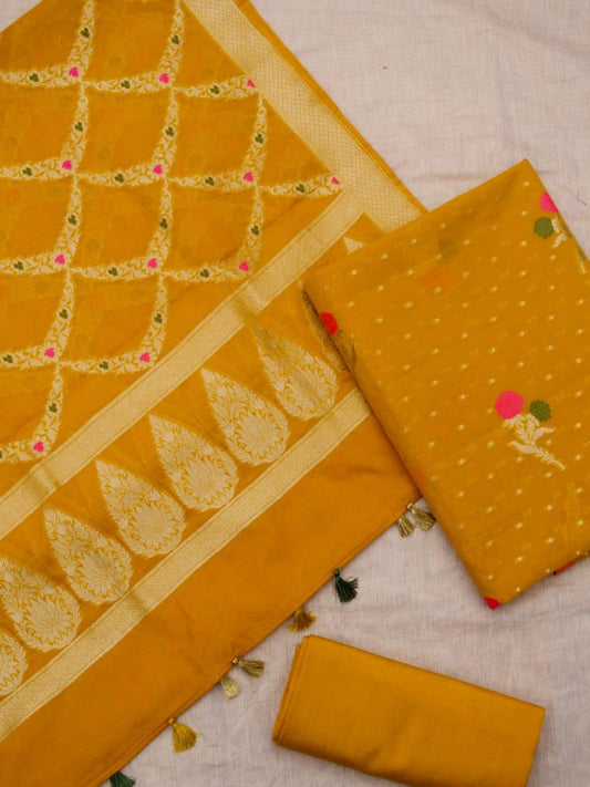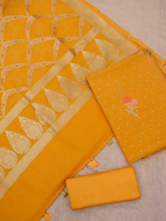 Gold Banarasi Premium Cotton Silk Jamdani Dress Materials
