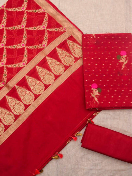 Carmine Banarasi Premium Cotton Silk Jamdani Dress Materials