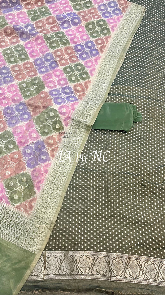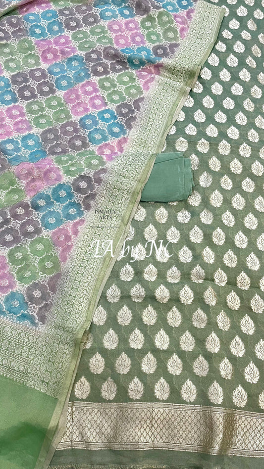 Mint Banarasi Pure Khaddi Tissue Georgette Dress Materials