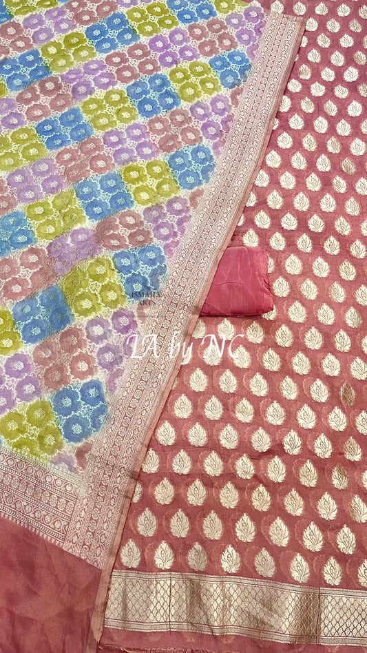 Flamingo Banarasi Pure Kora Silk Kadwa Dress Materials