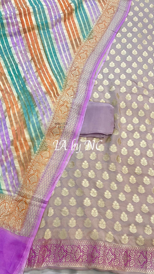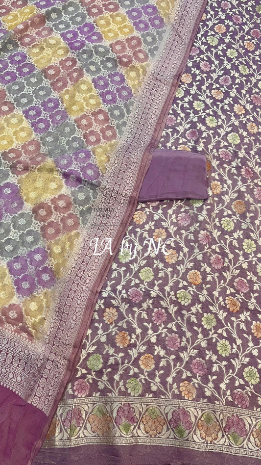 Lavender Banarasi Pure Kora Silk Kadwa Dress Materials
